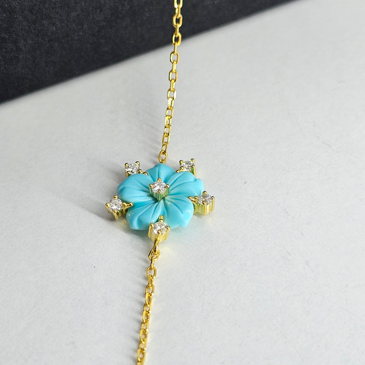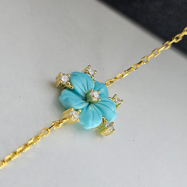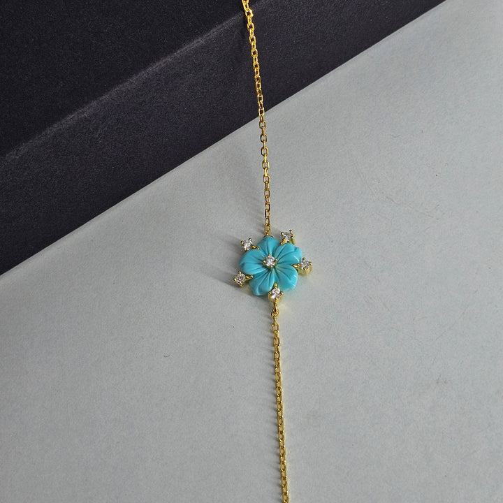 A unique silver 925 k bracelet (gold plated ) in a wonderful daisy flower design with turquoise and zircone stones