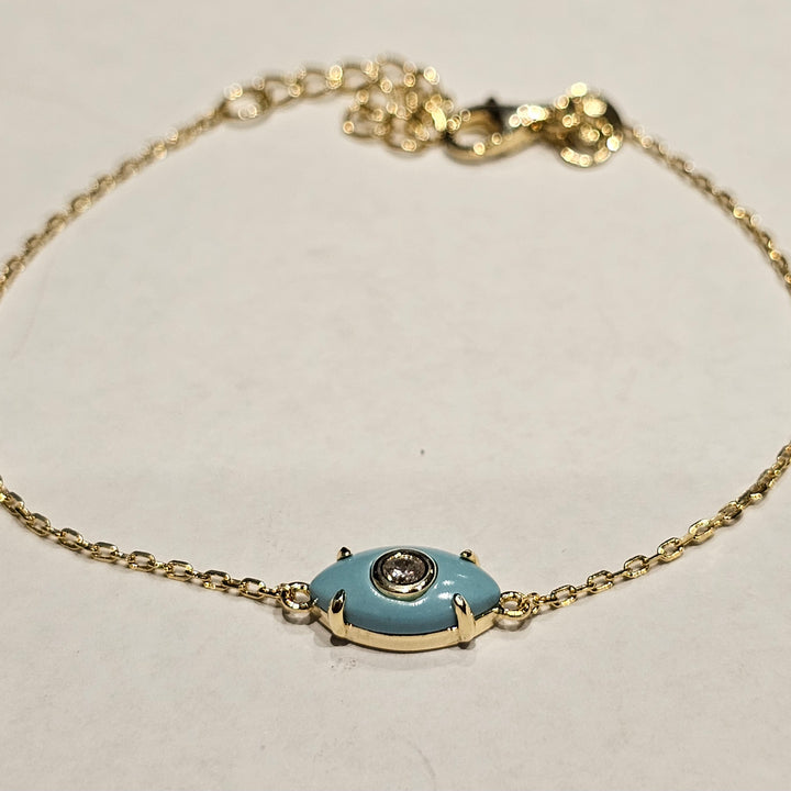 925 Swiss sterling silver bracelet, gold plated with a turquoise eye stone