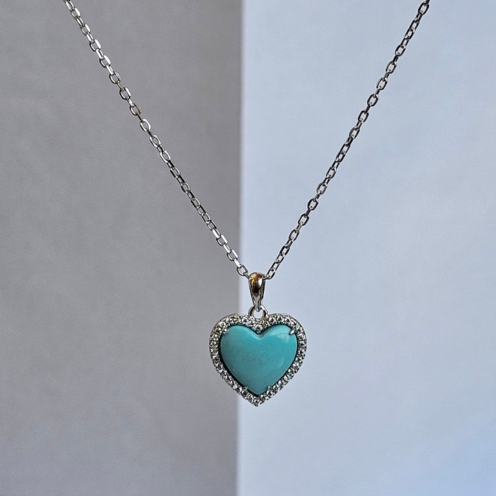 A unique heart shape necklace. Sterling silver 925 k with an awesome turquoise heart-shaped gemstone