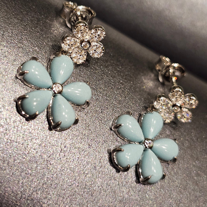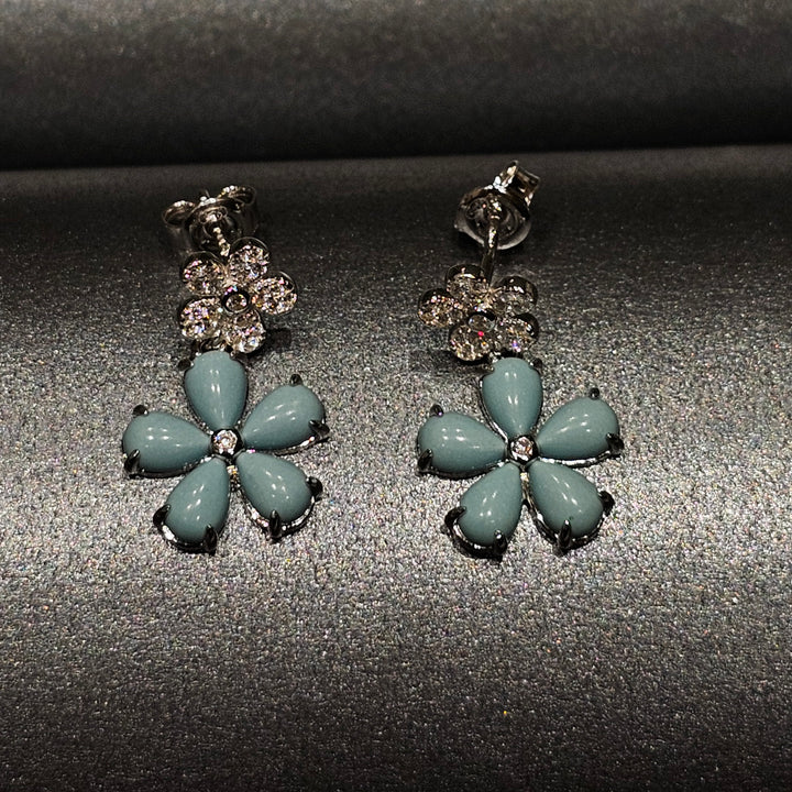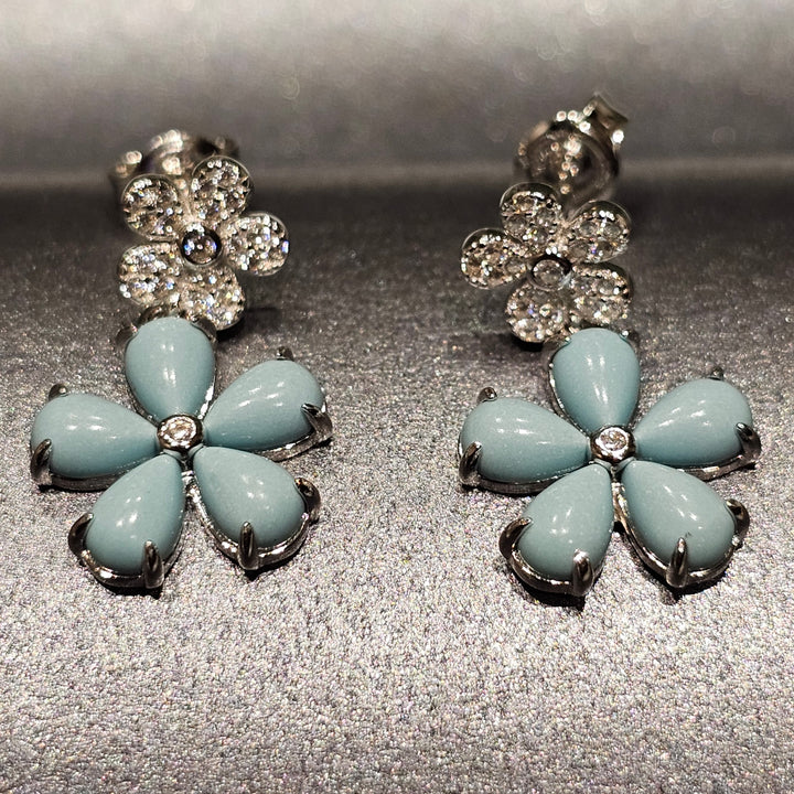 An awesome earrings flower design . Sterling silver 925 k with turquoise and zircone stones