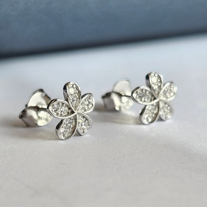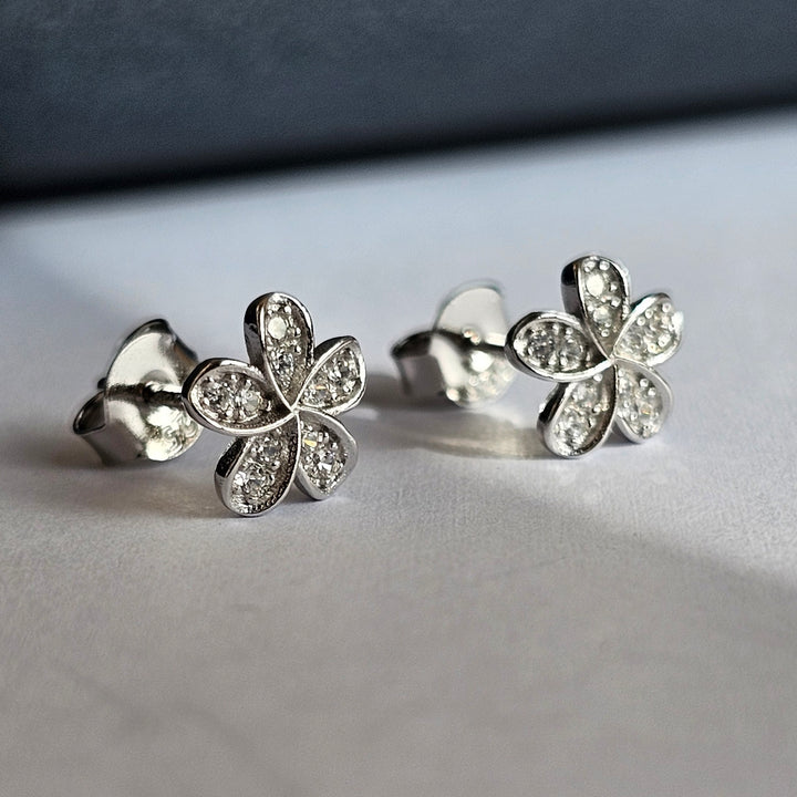 A delicate flower shape earrings sterling silver 925 with beautiful zircone stones