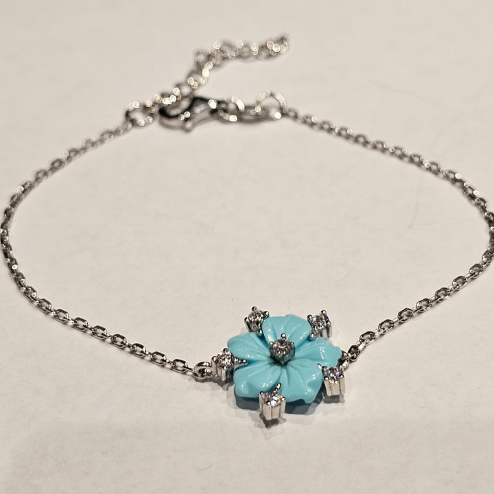 Elegant 925 sterling silver bracelet with turquoise and zircon stones