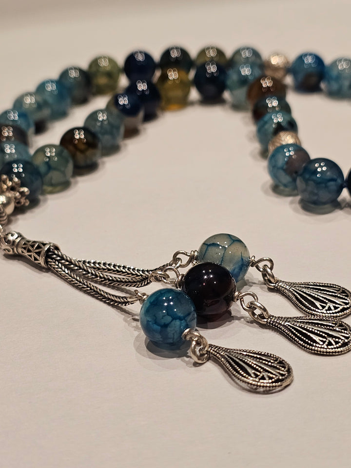 An exquisite 33 beads seb7a design. Silver 925 k with stunning agate stones that is believed to provide protection from negative energy as well as promote physical healing.