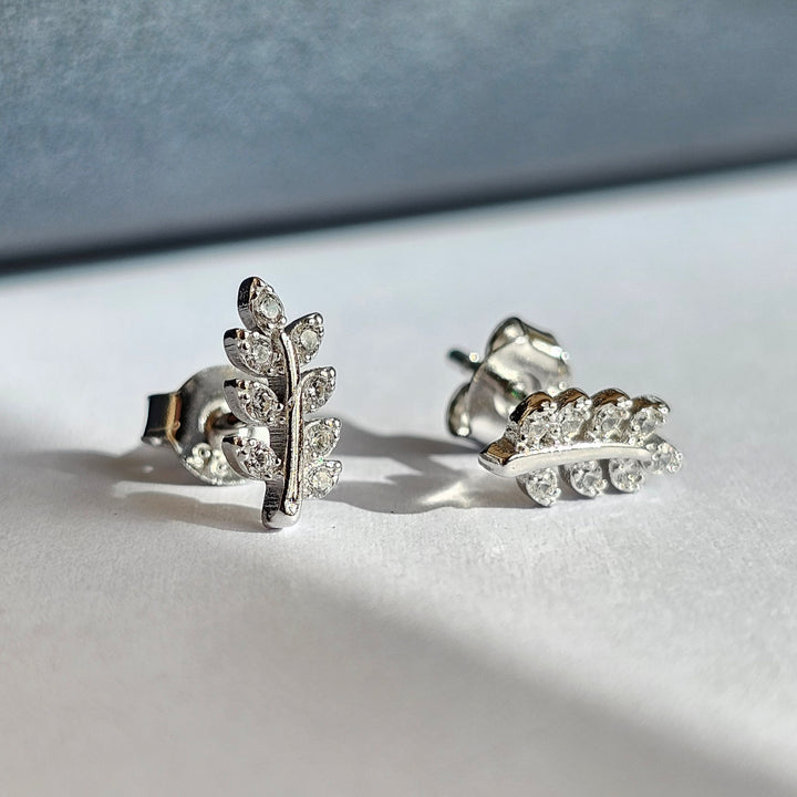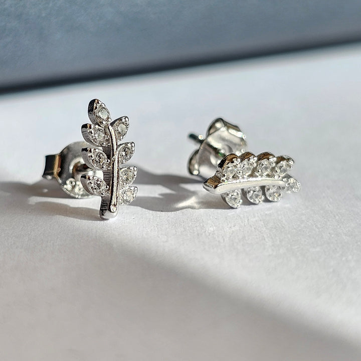 A delicate leaf shape earrings. Sterling silver 925 with beautiful zircone stones