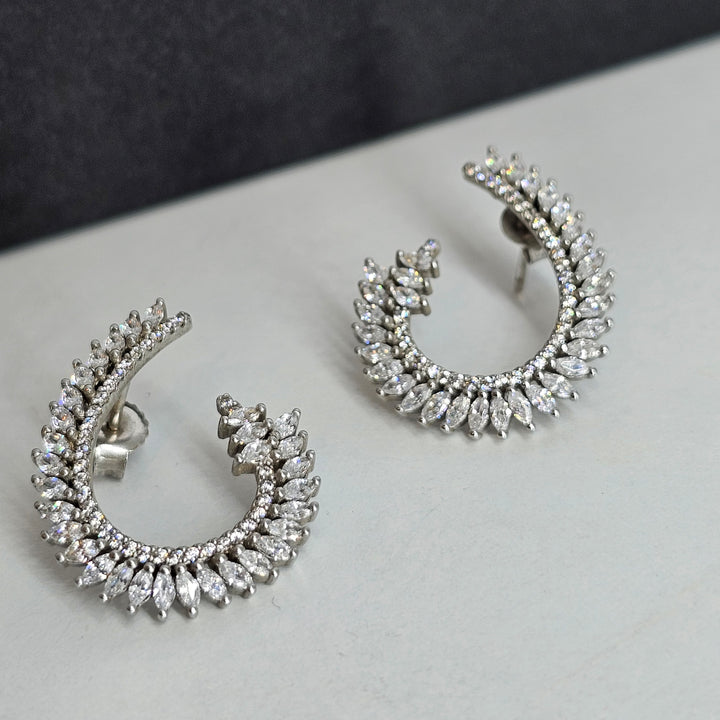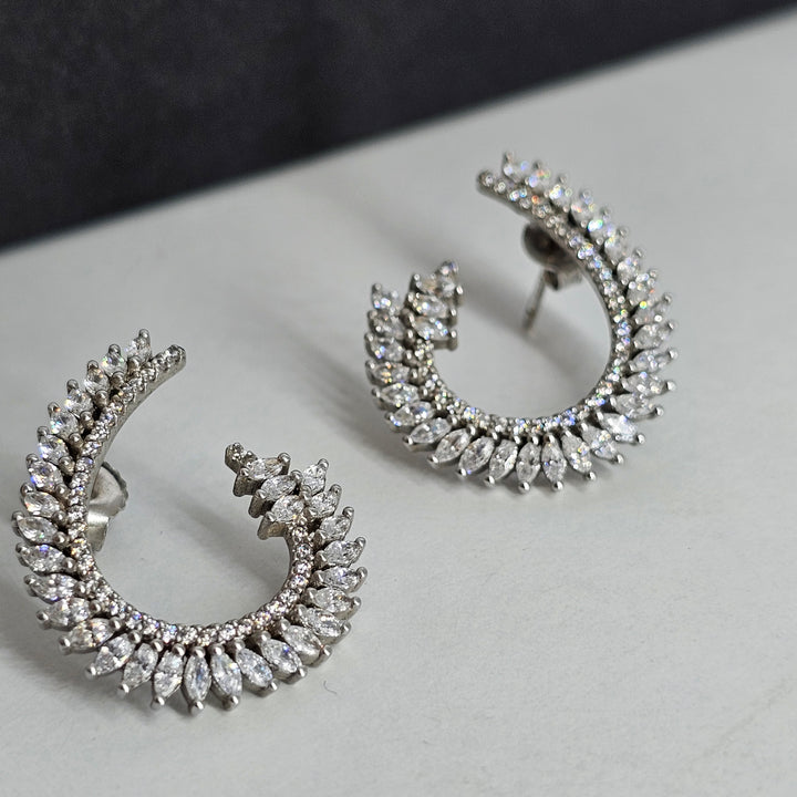 A half round elegant earrings in sterling silver 925 k with magnificent zircone stones