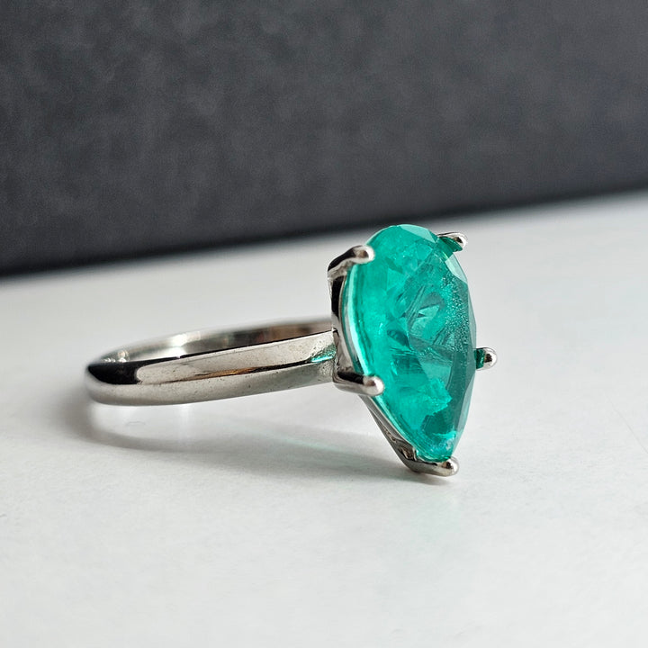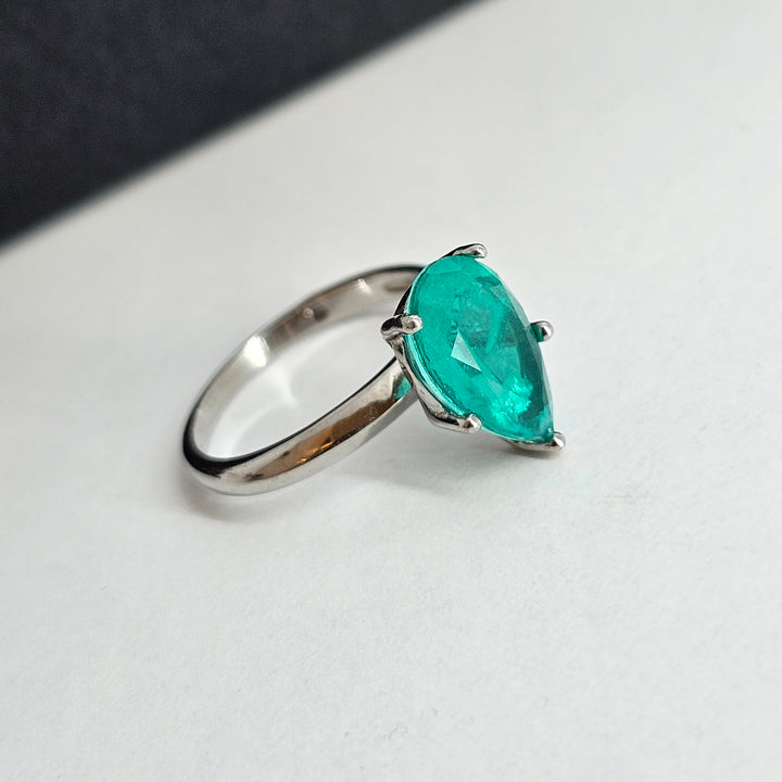 A luxurious pear shape ring silver 925 with a stunning emerald gemstone
