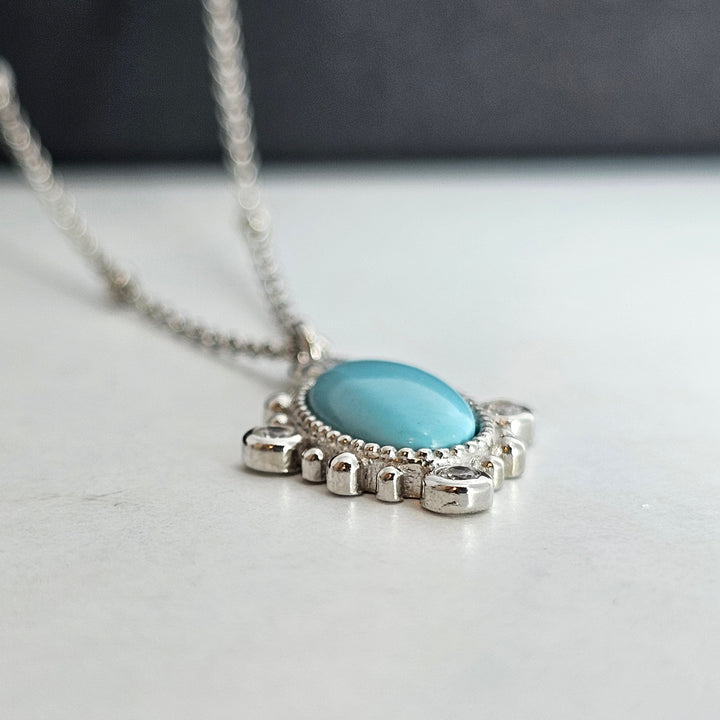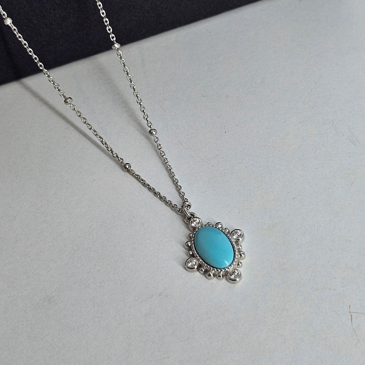 A marvelous sterling silver 925 k necklace with a stunning royal turquoise stone that is thought to have curative properties specially in providing emotional integrity, physical well-being, and spiritual development