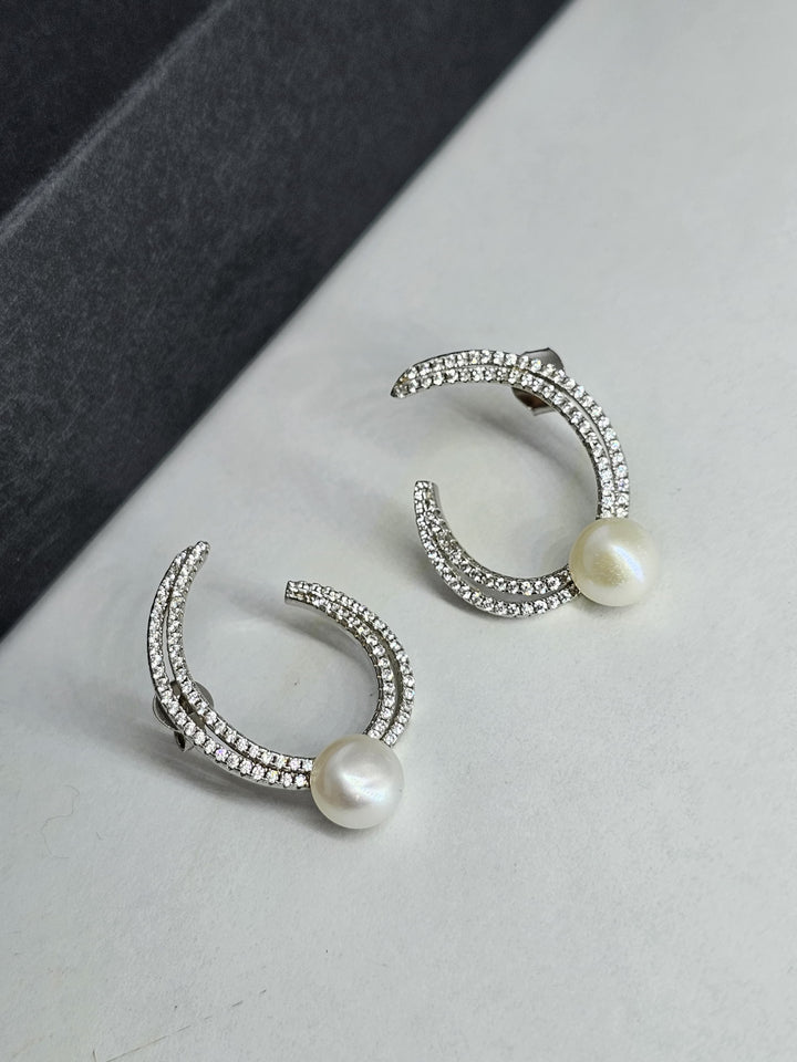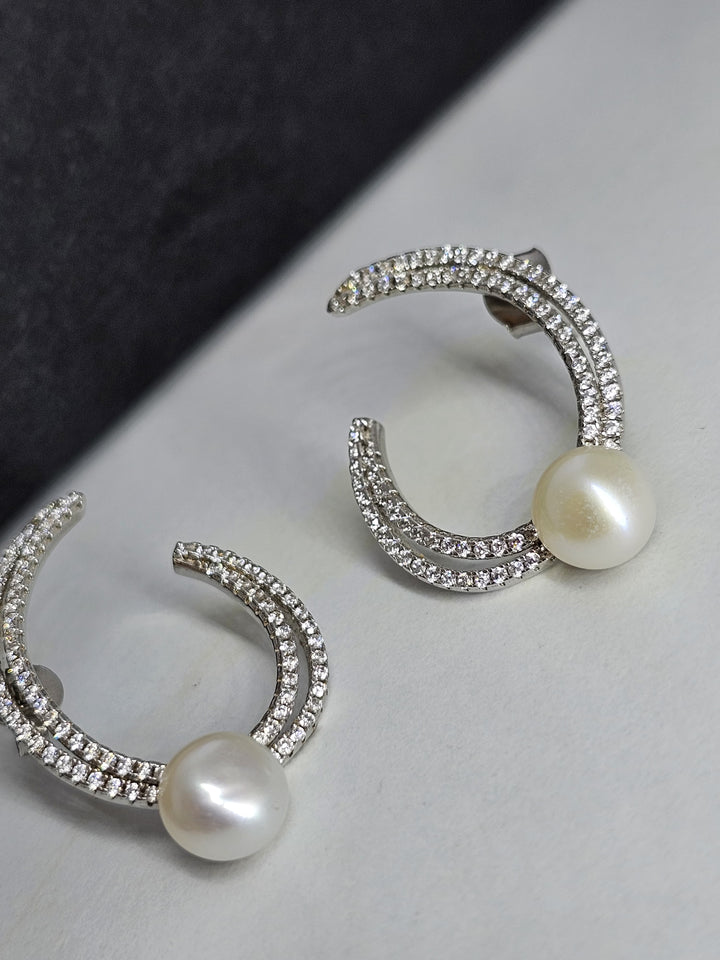 An elegant semi circle design of sterling silver 925k earrings with pearls