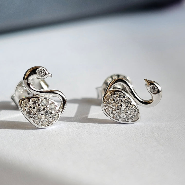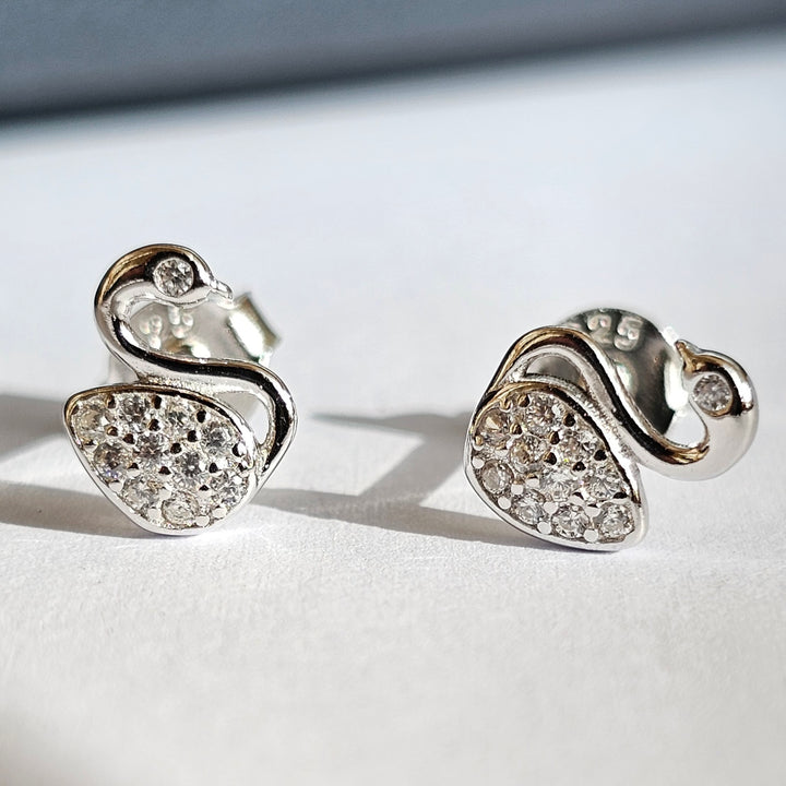 A delicate Swan shape earrings. Sterling silver 925k with magnificent zircone stones