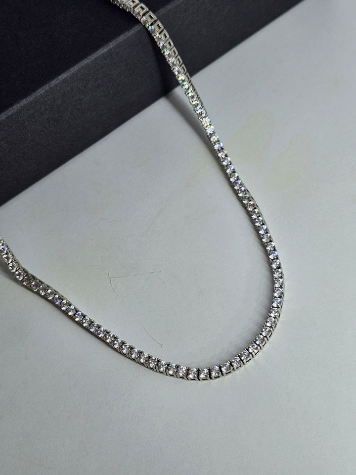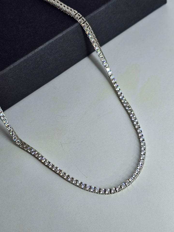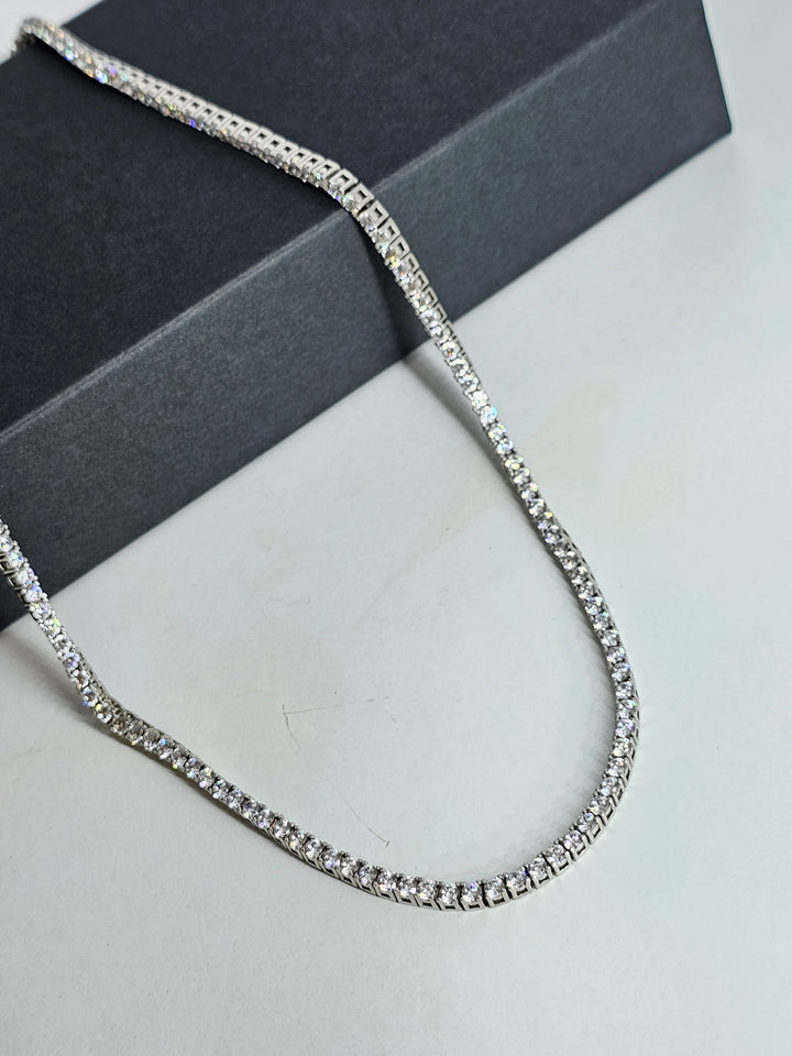 Trendy tennis necklace (like-diamond) design..sterling silver 925k with brilliant zircone stones