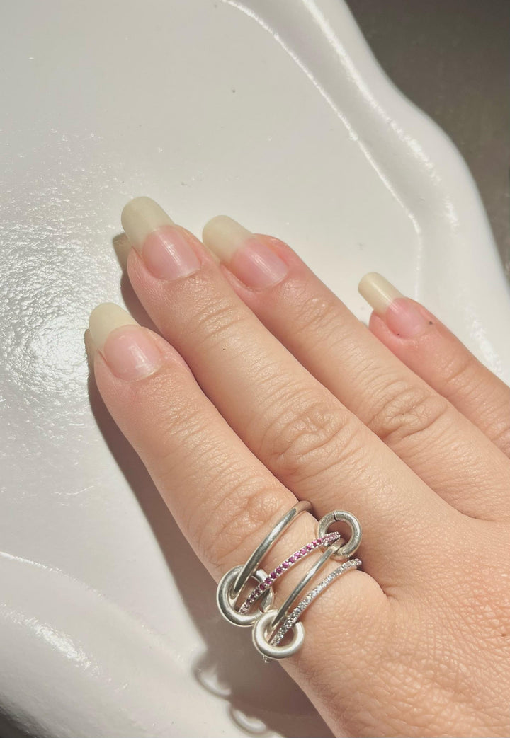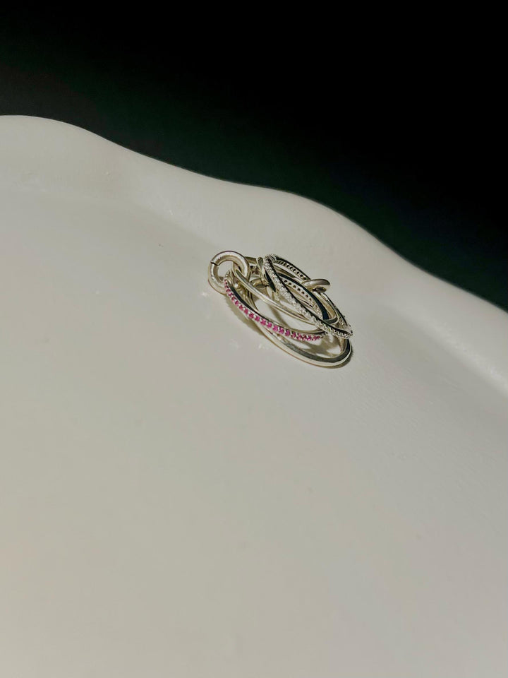 the trendy aurora ring. two tones with stunning white zircone & ruby stones